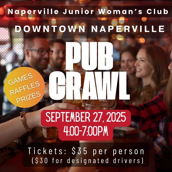 Join the Naperville Junior Woman’s Club for our Downtown Naperville Pub Crawl on Saturday, September 27th from 4–7 PM!